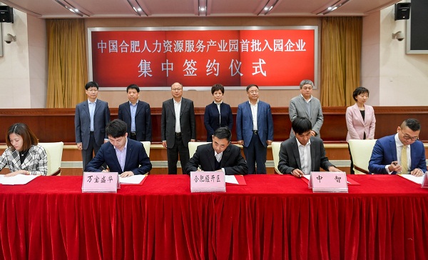签约仪式在合肥市政务中心举行。市长凌云出席仪式并见证签约,市委常委、经开区工委书记、管委会主任杨伟,中智公司卜玉龙董事长先后致辞并见证签约,副市长王文松出席仪式并见证签约,市政府秘书长罗平主持签约仪式,经开区工委副书记、管委会副主任桑林兵代表管委会与18家首批入园企业集中签约。